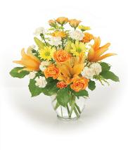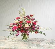 Erf 6003 vase Arrangement Orchids, roses, buttons, mix greens $ 65.50