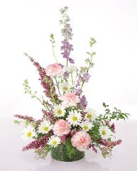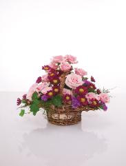Erf 3007 Basket Arrangement carnation, lilc daisies, mix greens, delphinium, $55.00