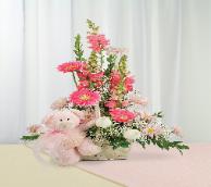 Erf 5500 Basket arrangement with flush gerbera daisy snap dragon and Greens. $55.50