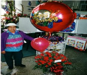 Topiary design with terekada vase, roses, altromeria, mix greens